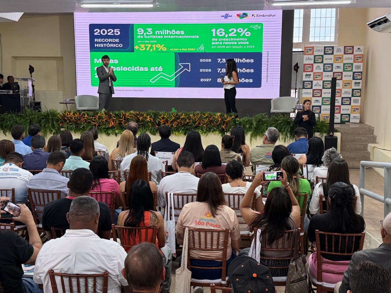 13/03/2026 – O trade turístico maranhense conheceu, na manhã dessa sexta-feira (13), o Plano de Ação para a promoção turística internacional do Maranhão. O documento reúne uma série de diagnósticos e estratégias para fortalecer a presença dos destinos do estado no mercado global e integra o Plano Brasis – Plano Internacional de Marketing Turístico 2025–2027. Embratur, Sebrae-MA e Governo do Estado, em parceria, promoveram o evento de apresentação realizado dentro da Expoturismo, na capital São Luís.